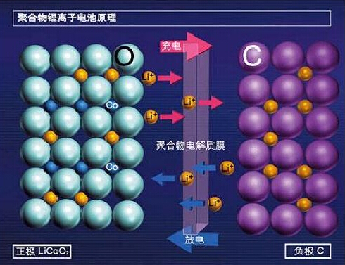 電池充電時(shí),正極的鋰原子電離為帶正電荷的鋰離子和電子。帶正電的鋰離子從正極出發(fā),穿過薄膜后來到負(fù)極,并在負(fù)極與電子合成鋰原子。電池放電時(shí)則完全相反,鋰離子從負(fù)極材料表面電離為鋰離子和電子,其中帶正電荷的鋰離子從負(fù)極出發(fā),穿過薄膜后來到正極,并與電子合成鋰原子。