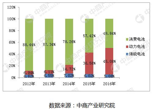 鋰離子電池具有能量密度高、循環(huán)壽命長、充放電性能好、使用電壓高、無記憶效應(yīng)、污染較小和******性高等優(yōu)勢(shì)。鋰離子電池經(jīng)過多年的發(fā)展,工藝已經(jīng)趨于成熟,價(jià)格逐步下降,加上******政策助推,導(dǎo)致鋰離子電池在電池行業(yè)的市場份額持續(xù)提升。鋰離子電池的終端應(yīng)用包括消費(fèi)電池市場、動(dòng)力電池市場及儲(chǔ)能電池市場。其中,消費(fèi)電池市場是******的終端應(yīng)用,2016年在鋰離子電池的終端應(yīng)用中占到49.84%。動(dòng)力電池市場是鋰離子電池的第二大終端應(yīng)用,2016年在鋰離子電池終端應(yīng)用中占比達(dá)到45.08%,是近年來增長***快的領(lǐng)域。